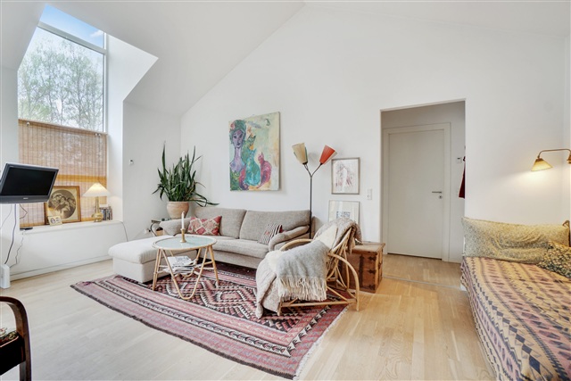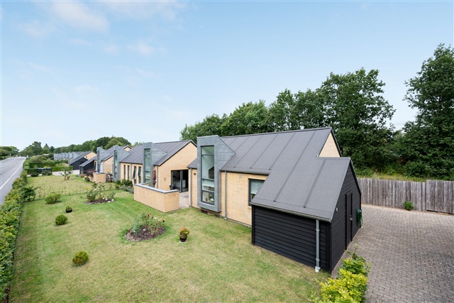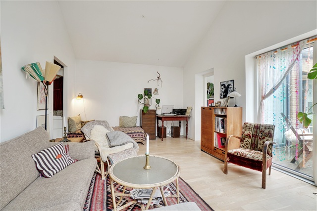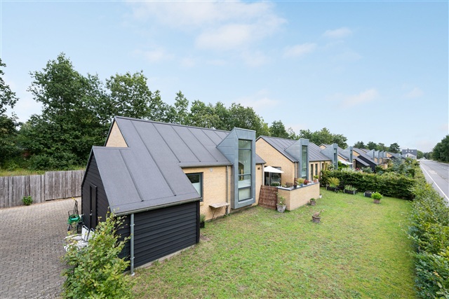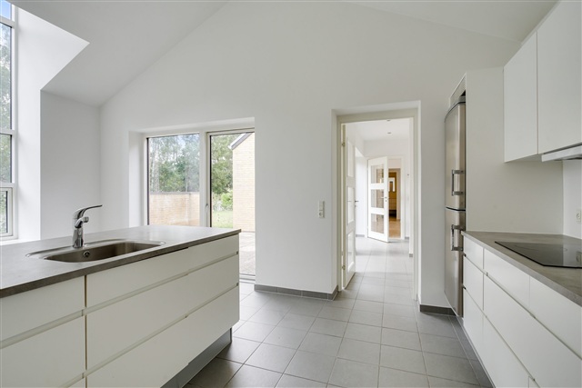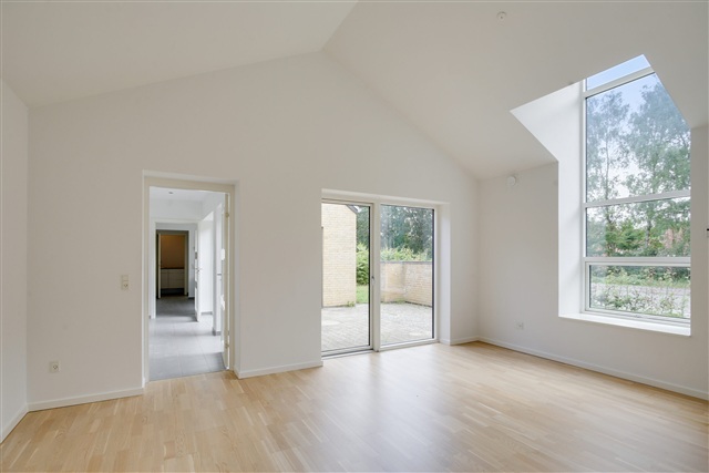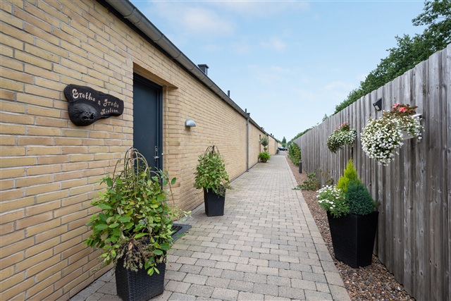 Constructed in 2011, these homes are situated in the desirable area of Sejs-Svejbæk, offering convenient access to schools, shopping options, and more. Residents benefit from close proximity to the beautiful natural surroundings the area provides, while Silkeborg Centrum is just a short drive away, granting access to a wide variety of amenities.Upon entering the house, you step into a bright foyer featuring floor-to-ceiling glass panels that look out onto the terrace, alongside a spacious wardrobe area. The kitchen is bright and outfitted with white cabinetry, complemented by light grey tiles and a vaulted ceiling that extends the sense of openness.
