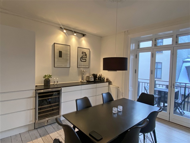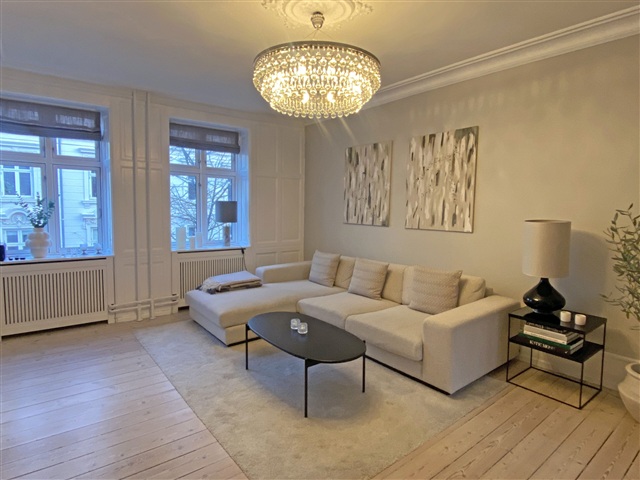 Peder Skrams Gade udstråler en særlig form for ro i hjertet af det historiske Gammelholm-område, som tidligere fungerede som flådens base. Her mødes livlighed og fred i en sjælden harmoni, hvor det gamle og det nye smelter sammen på fineste vis.Lejligheden fremstår med stor elegance og charmeres af de originale plankegulve, der præger boligens atmosfære. Indenfor venter en rummelig entré, der forbinder til en funktionel fordelingsgang og et stilrent køkken, som rummer plads til spisebord. Stuen er indrettet med et tidløst og sofistikeret koncept, mens der desuden findes en behagelig spisestue, et soveværelse udstyret med integrerede skabe samt et moderne, velholdt badeværelse. Tilknyttet boligen er en rummelig altan, der tilbyder god plads og bidrager til boligens behagelige udendørsområde. Lejligheden udlejes møbleret og fremstår yderst indbydende med en høj grad af stil og charme. Bygningen bærer præg af klassisk københavnerstil med smukke arkitektoniske elementer og et hyggeligt gårdmiljø.