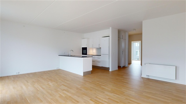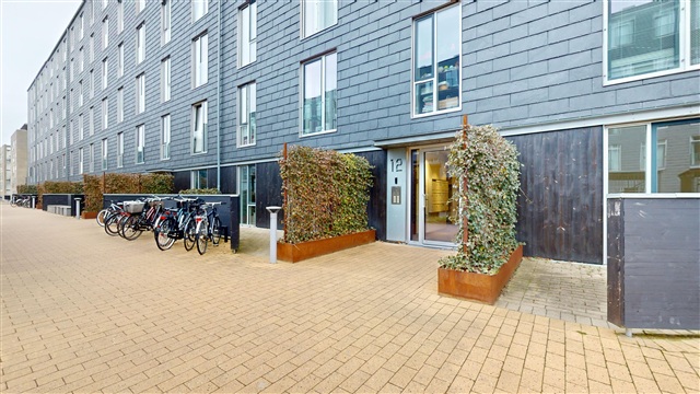 Additional amenities in the residence include an elevator, a communal room, bicycle parking, and an underground car park. Residents also benefit from access to a green courtyard and close proximity to Den Grønne Kile, a recreational zone being developed with landscaping, walking paths, and comfortable seating areas designed for play and relaxation.