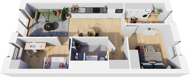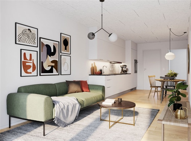 Situated on Katholtvej, this inviting terraced house harmonizes modern design, soothing color schemes, and ample natural light to create a comfortable living environment. The home is designed with everyday convenience in mind, nestled in a neighborhood characterized by a strong sense of community, safety, and abundant green surroundings.At the heart of the residence lies an open-plan kitchen and dining area, which serves as a versatile space for cooking, dining, and family gatherings. The kitchen features bright materials and high-quality appliances, while expansive windows allow sunlight to fill the room. This space is thoughtfully divided to accommodate both a dining table and a cozy seating area.