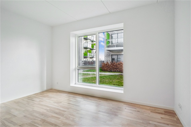 The Nordlandet Risskov development consists of 74 privately rented residences that vary in size and type, ranging from 50 to 128 square meters. The property includes apartments with two, three, four, and five rooms designed for families or shared living, as well as two-story townhouses. Centrally located within the complex, and close to the residences, there is a green communal garden area intended for relaxation and outdoor activities for residents. Every unit benefits from either a private enclosed terrace or a balcony.