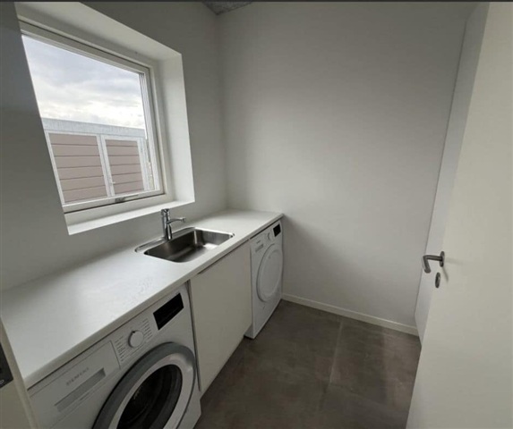 Situated in the picturesque area of Arnbjerg, this newly constructed and modern functionalist-style terraced house on Røllikevej is now available for rent. The residence encompasses a total area of 105 square meters and is designed with energy efficiency in mind.The layout includes three well-proportioned bedrooms, each outfitted with built-in wardrobes, complemented by a spacious entrance hall. Adjacent to the entryway, there is a separate utility room featuring ample storage cabinets. The home boasts a contemporary open-plan kitchen from HTH, notable for its high quality, alongside a bright and pleasant bathroom. The expansive living room is filled with natural light and offers direct access to a sunny terrace and a private garden.