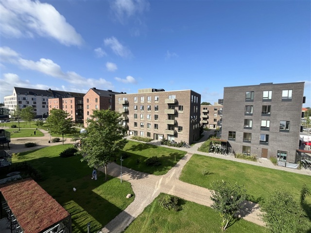 The apartment is situated within one of the most recently constructed buildings in Gartnerbyen, placing you right at the center of the area. Essential shopping facilities are conveniently located within a 300-meter radius.Inside the apartment, there is a small storage room available. Additionally, bicycle parking can be found directly outside the building.