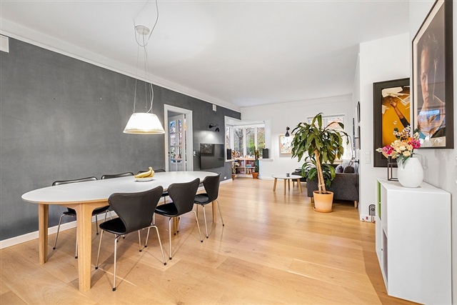 Located in the charming Dyssegård neighborhood near Stenagerveji in Hellerup, this well-maintained and efficiently laid-out villa offers 135 m² of living space along with a spacious 90 m² basement level. Upon entering, you are greeted by an inviting hallway leading to a lovely utility room with its own separate exit to the terrace and garden. The home features a guest toilet and one of four bedrooms, which includes high-quality built-in wardrobes providing ample storage and closet space. The bright, modern Hanstholm kitchen flows openly into the living room area, with an additional bedroom that opens onto one of the pleasant terraces. On a split level, there is further access to the garden, two larger bedrooms, and a stylish bathroom.The basement is well-arranged with three multipurpose rooms plus a larger bathroom; it has been tested and found free of radon, making it suitable for living or recreational use. The property is conveniently positioned close to Dyssegård School, with easy access to public transport, shopping, and also within a short distance to Rygaards School. The villa will be rented unfurnished starting April 2026 for a 2-3 year term, primarily targeting expatriates. Pet ownership may be considered upon request. Included in the rent is a gardener who takes care of maintaining the garden and outdoor areas.