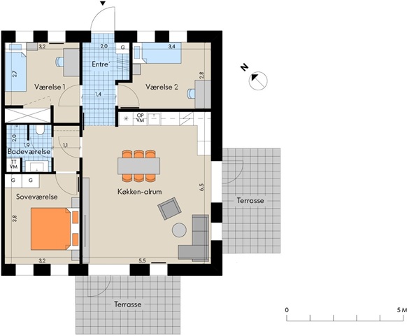 This residence offers both communal and private spaces. Upon entering through the foyer, you will find two well-arranged bedrooms, while the spacious kitchen and living area comfortably accommodates a dining table alongside a seating corner. From this area, there is access to two terraces. The third bedroom provides ample room for a double bed as well as wardrobes. The apartment is characterized by abundant natural light and a generous sense of openness and space.The building includes an elevator, and the unit comes with a storage room located in the basement. Bikes can be parked outside in designated bicycle areas, and there is ample availability of parking spots nearby for cars. Several parking spaces in the vicinity are equipped with shared electric vehicle charging stations. Please note that the photos displayed do not depict this specific unit, so views, room layouts, and other features may differ. The images serve only as examples, and the actual size and configuration might vary (refer to the floor plan for details).