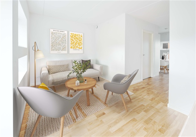 Situated just 7 kilometers from Aarhus city center and close to the charming neighborhood of Tilst, which offers shopping options and an active community life, you will find Tulipanhusene and this highly sought-after three-room terraced house spread over two floors. It suits small families, couples of all ages, or those interested in shared living arrangements.The terraced house boasts a well-designed layout with ample natural light entering from multiple directions. Inside, the property includes a bright open-plan kitchen and living area, a stylish bathroom equipped with a shower cabin, wall-mounted toilet, and built-in cupboard space, as well as a spacious landing on the first floor that can be furnished. There are two proper bedrooms, each featuring a French balcony. From the living room, there is direct access to a lovely terrace.