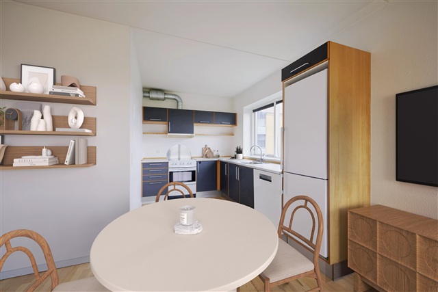 Located on Skejbytoften, just a short distance from Skejby Center and approximately 5 kilometers from the heart of Aarhus, this charming two-room apartment awaits. The residence is bright and inviting, offered at a low move-in cost, and features a layout comprising an entrance hall, a combined living room and kitchen area with access to a balcony, a comfortable bedroom, and a bathroom equipped with underfloor heating as well as a combined washer and dryer.The apartment comes fully furnished with all necessary major appliances and includes an additional storage room. The building itself offers several amenities such as the option to keep pets, access to green communal spaces, district heating, a door telephone system, and an elevator. Residents also benefit from convenient access to an extensive network of walking and cycling paths, along with free parking facilities nearby.
