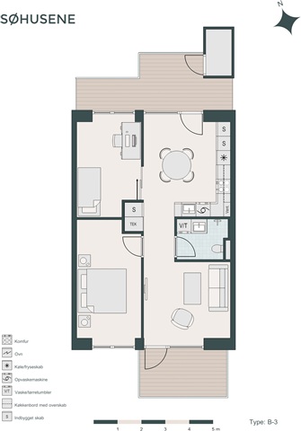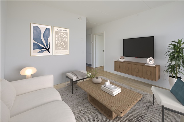 Located just 6.5 kilometers from Aarhus city center, this attractive three-room apartment offers an ideal setup either for two friends sharing or for those seeking additional living space. The layout is designed for maximum efficiency, featuring an open-plan kitchen and living area that seamlessly connect, allowing for both comfort and practicality.Inside, you will find a stylish bathroom equipped with built-in cabinets, a wall-mounted toilet, and a combined washing machine and dryer unit. The apartment includes two generously sized and bright bedrooms, and from the living room, there is direct access to a spacious balcony. All major appliances are included, and underfloor heating extends throughout the entire home, enhancing the overall modern and clean-lined aesthetic. Large windows fill the interior with natural light, contributing to an airy and welcoming atmosphere.