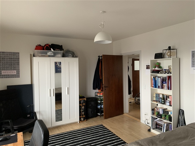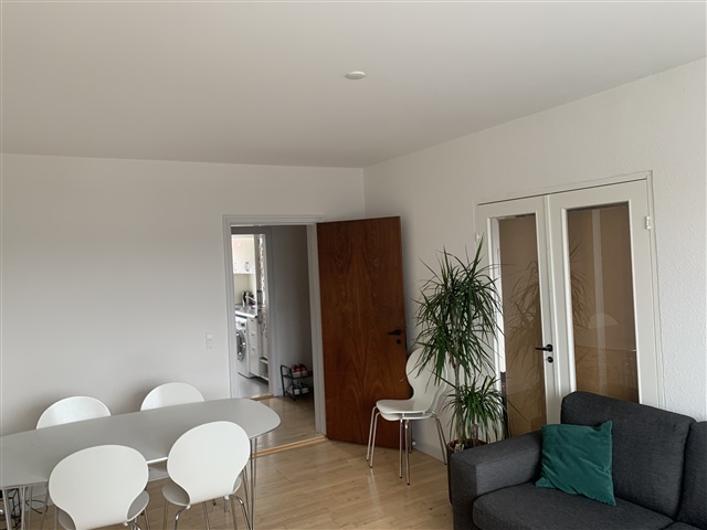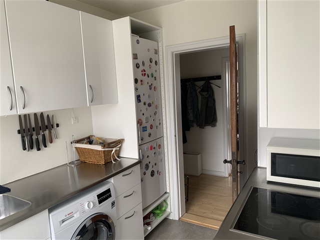 This spacious four-room apartment is ideally suited for sharing among up to three individuals, featuring a bright and welcoming living room that serves well as a common area. The unit includes three well-sized bedrooms, each offering ample room for a bed, wardrobe, and potentially a desk. Two of these bedrooms provide access to the apartment's balconies, allowing for outdoor space directly from the rooms.The kitchen comes fully equipped with essential appliances such as a refrigerator/freezer, cooktop, extractor hood, built-in oven, and dishwasher, complemented by generous cabinet space. Additionally, a washer and dryer are installed within the kitchen area for convenience. Upon entering the apartment, one finds a large, spacious entrance hall that connects the various rooms naturally. From here, access leads to a practical bathroom fitted with a shower enclosure.