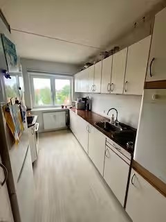 Tastefully furnished and fully equipped 2 rooms apartment in a peaceful Frederiksberg neighborhood (the apartment is comprised of an additional small bedroom/office, which is currently used for personal storage and locked). Bright living spaces, original artwork, designer furniture, washer and dryer, elevator access, private parking, and a balcony with sunset views. Fully equipped functional kitchen. Wifi Separate toilet from bathroom. Bedroom with queen size bed and built in closet. The building benefits from a communal garden area with picnic table and playground. Conveniently located near Fuglebakke S-train, Metro, and a wide range of parks, shops and restaurants. Perfect for expats needing a soft landing in CPH. Availble mid-january until summer 2026 (flexible dates).