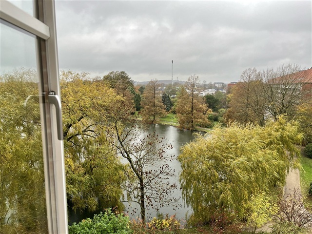 Large windows not only illuminate the interiors but also present a captivating view overlooking one of Aalborg's most sought-after locations, Østre Anlæg. This green area offers a peaceful natural retreat while maintaining proximity to the city center. The surrounding neighborhood is pleasant and vibrant, with numerous cafés, restaurants, and shops all within walking distance. Østre Anlæg itself invites residents to enjoy leisurely strolls and a tranquil atmosphere.