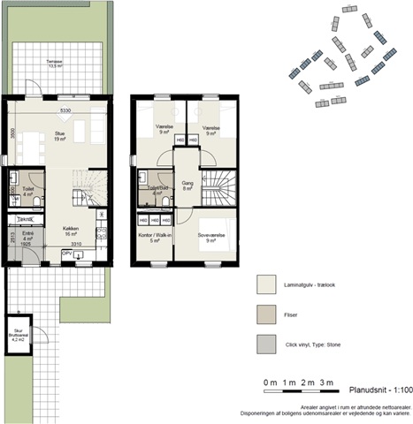This bright terraced house is designed with a functional division between the living areas and the sleeping quarters, creating optimal conditions for everyday life. On the ground floor, there is an entrance hall offering storage space, a utility room, and a guest toilet. The kitchen features white HTH cabinetry, generous countertop space, and includes all necessary built-in appliances. The living room faces the garden, boasting large windows that fill the space with natural light and provide direct access to the terrace and your own private green area.Upstairs, the property's three bedrooms are arranged around a spacious hallway; two of these rooms each measure 9 square meters, alongside a large master bedroom. Additionally, there is a 5 square meter extra room ideally suited for use as an office or a walk-in closet. A bright bathroom completes this floor. Outside, you can enjoy a cozy terrace, a paved front area, and a convenient storage shed. Parking is available in a shared parking lot.