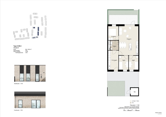 Situated in Vikingedalen, this bright and welcoming townhouse offers 98 square meters of well-designed living space where contemporary style seamlessly blends with a cozy atmosphere. The quality construction places emphasis on practicality, tranquility, and well-being, making it an ideal choice for families or couples who seek a balanced lifestyle amid greenery, yet close to both urban conveniences and natural surroundings.The heart of the home is an expansive, open-plan kitchen and living area, designed to bring everyday life together through cooking, studying, and relaxation. The kitchen features a clean, light-toned finish and includes all essential appliances such as a dishwasher, providing ample room for meal preparation and storage. Adjacent to this is the spacious living room, where large windows invite natural light to fill the space, creating an airy and pleasant ambiance. From here, you have direct access to a terrace and the garden, which serve as additional living areas during sunny days.