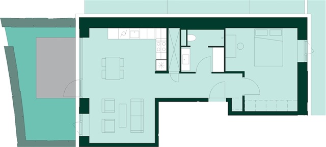This ground-floor apartment features an entrance hall that leads directly to a bathroom equipped with a toilet, a shower area, and combined washing machine and dryer facilities. Beyond the entrance, you will find a spacious kitchen and living room arranged in an open-plan layout. From the living space, there is access to a charming small terrace facing west. The apartment also includes a generously sized bedroom with built-in wardrobes. The building enjoys a convenient location close to excellent shopping options, public transportation, schools, and daycare facilities, as well as nearby parks and green spaces. Please note that new photographs of the apartment will be available soon.