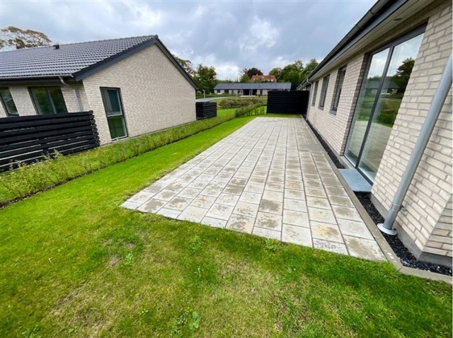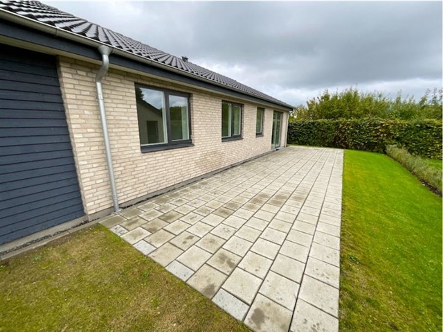 The choice of materials is of high quality, with utility rooms fitted with permanent cabinets and countertops from HTH. There is allocated space for both a washing machine and a tumble dryer. Additionally, a concealed technical cabinet and attic hatch allow access to private loft space. The bathroom includes a fixed bathing area from HTH, consisting of a washbasin with a mirror, an Ifö toilet, premium German Hans Grohe fittings, and a designer drainage channel in the shower niche. Lighting fixtures include spotlights in the bathroom, utility room, and entrance hall. All rooms feature underfloor heating controls, along with a sound-insulated heat recovery ventilation system to ensure a healthy indoor climate. Externally, a water tap and spotlights are installed under the entrance eaves.
