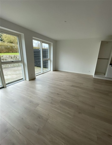 This detached house features an integrated carport alongside a storage shed. On either side of the residence, there are two spacious terraces, complemented by a lawned garden enclosed by hedges. The interior showcases a contemporary and bright layout, including an open-plan kitchen and dining area connected directly to a cozy living room. Additionally, the house contains a bedroom equipped with a built-in wardrobe wall, two generously sized rooms, a bathroom, and an entrance combined with a utility room.The property offers a private garden and terraces for outdoor enjoyment. The outbuildings include a 6.4 m² storage room. Parking is provided by a vehicle shelter adjacent to the home. All utility expenses are settled directly with the relevant supply companies.