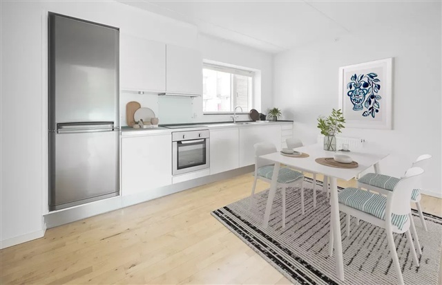 The move-in terms require a deposit equivalent to two months' rent, with no advance rent payment. Prospective tenants must not be listed in the RKI debt register to qualify. Interested parties are encouraged to arrange a viewing promptly. Additionally, prospective renters should check their eligibility for housing benefits (boligstøtte) through Udbetaling Danmark.