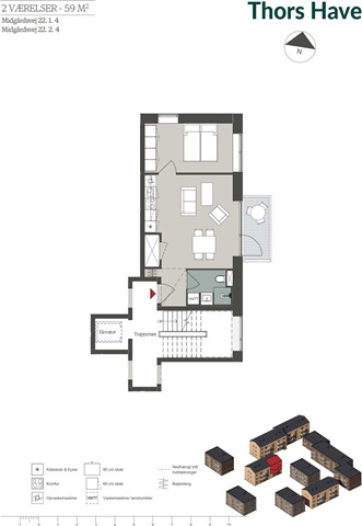 Nestled amidst forested landscapes and beautiful natural surroundings lies Thors Have, Odense's newest urban neighborhood. This area offers inviting courtyard spaces and lush green recreation zones perfect for walking, running, or cycling while enjoying the scenic environment. Its location is also highly convenient, placing you close to daily grocery stores, a wide variety of shops in the Tarup Center, and within just a few minutes' walk to the Light Rail.Thors Have provides a selection of apartments designed to meet diverse living needs. The housing options range from well-planned two-room units measuring 53 square meters to four-room flats of 99 square meters, all featuring spacious balconies or terraces. Each residence is accompanied by complimentary parking for one vehicle per lease, with charging facilities available.