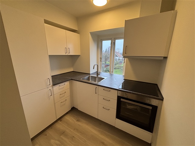 Two-room apartment of approx. 57 sq m. The property is located in a central and sought-after residential area in Roskilde. The apartment is rented to a quiet person. Short walking distance to the station and Ro's Torv with all shopping necessities. The rental is newly renovated/modernized and contains, hallway, new kitchen, toilet with separate shower and underfloor heating, bedroom with west-facing balcony and living room. Access to laundry room with laundry system. Pets not allowed. Rented to a quiet person. The rent listed includes a bicycle shed and a large closed private storage room in the basement. Car parking can be assigned.If you want to read the description in its original language that is also possible. Read original description