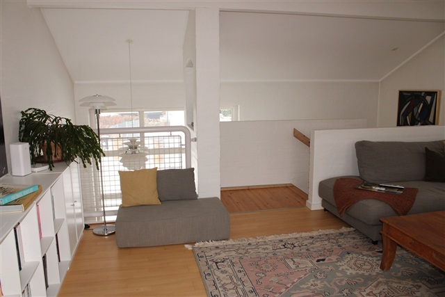This charming semi-detached house is situated in a wonderfully tranquil area in Gentofte. The property forms part of a small complex comprising four apartments within two semi-detached buildings, located just a stone's throw from Parkovsvej and Bernstorffsvej. The setting is idyllic, with Gentofte Riding Club as a neighboring landmark.The residence spans two levels. On the ground floor, there is a spacious and inviting kitchen and dining area, accompanied by a bedroom, a functional utility room, an entrance hall, and a nicely appointed bathroom featuring a shower. Connecting the floors is a stylish staircase leading upstairs to the first floor, where the main living room is located. This space is characterized by a sleek, open-plan design and large glazing elements that flood the area with natural light. Additionally, this level offers a neat balcony facing south, providing views of the riding arenas and the master bedroom, which includes an en-suite bathroom equipped with a luxurious bathtub.