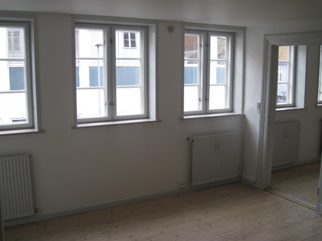 Situated in the heart of Nyborg, just off the pedestrian street, this well-maintained 4-room apartment spans 87 m² and is found on the first floor. The kitchen features white cabinetry and is equipped with appliances, including a washing machine. The bathroom is modern and includes a shower.Two adjoining living rooms are part of the layout, with the first living room providing access to a sizable storage room. Additionally, there are two spacious bedrooms positioned consecutively. The flooring consists of planed wooden boards, and the apartment is fitted with an intercom system.