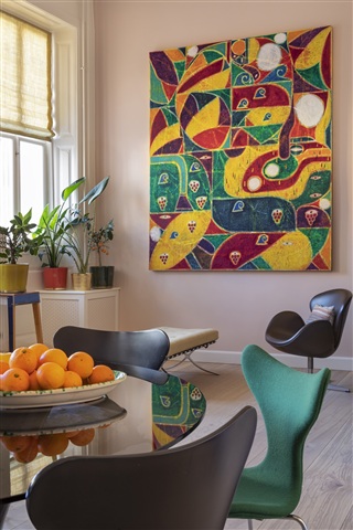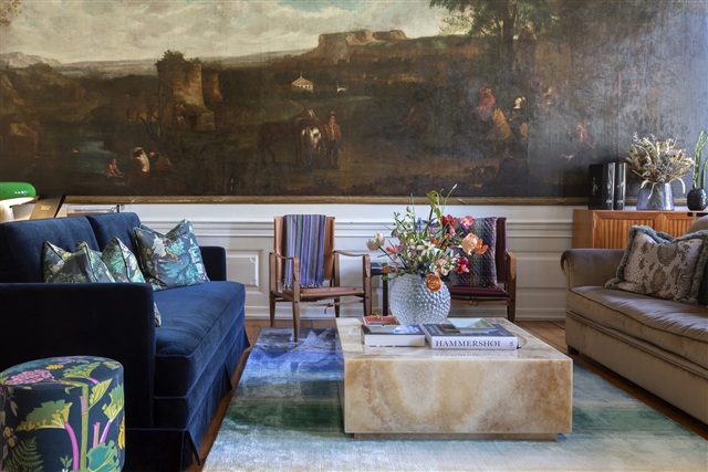 The apartment contains protected wall paintings, which today appear as integrated works of art. The most striking is a large, restored motif of Christian VII on the hunt, flanked by Johann Friedrich Struensee and Caroline Mathilde. The wall painting is done in the original style and carefully restored in collaboration with the National Museum. These artistic elements add a historical depth to the home that is extremely rare in private homes.