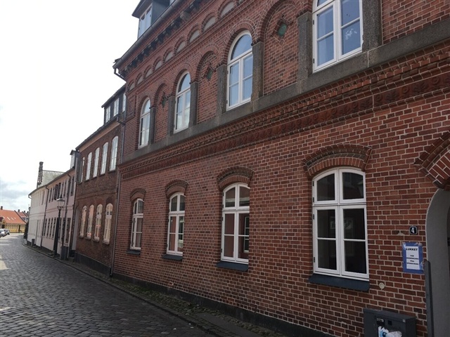 This spacious and beautifully renovated four-room apartment is located in the heart of historic Ribe. Upon entering, you are greeted by a bright hallway offering ample space for wardrobe storage. The open-plan kitchen and dining area are equipped with numerous cabinets and include a dishwasher for convenience. The unit features three well-sized bedrooms, along with a bathroom fitted with a shower and a combined washing machine and dryer column.Additionally, the current tenant offers the option to purchase curtains and a wardrobe. The apartment also comes with an associated storage room for additional belongings. This residence stands out with its elegant design and attention to detail. Furthermore, it is possible to acquire a dedicated parking space as well as a good, dry basement storage room.