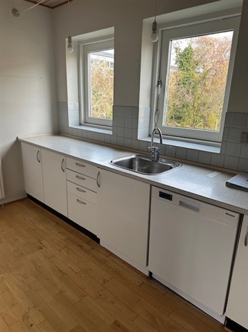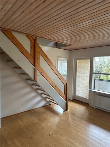 This charming 4-room apartment offers an abundance of natural light throughout. Positioned in an exceptional and truly unique location, it provides walking distance access to all the amenities of the city center, including the pedestrian street's array of shops and cafés. Nearby, you will find Munke Mose with the Odense River, pathways, and green spaces, as well as convenient proximity to shopping facilities and the Odense Light Rail. Such a prime spot is rare to find in Odense.The apartment spans two levels and features four rooms in total. Upon entering, there is a hallway with a wardrobe and access to a bathroom equipped with space for a washing machine. The spacious, well-appointed kitchen offers ample cabinet space and flows openly into the dining room. From the dining area, you can step out onto a lovely sunlit balcony. A staircase from the dining room leads to the upper level, where the living room is located, accompanied by a second bathroom and an additional room.