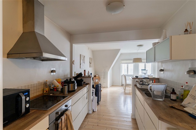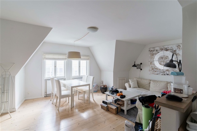 Situated on the third floor at Landemærket, this well-maintained and appealing apartment offers a superb central location paired with a practical and contemporary layout. Positioned in the heart of Copenhagen, residents have easy access to the city's vibrant atmosphere, cultural attractions, shopping options, and public transportation.Spanning 68 square meters, the apartment features a bright and welcoming open-plan kitchen and living area, which serves as the focal point of the home. The kitchen is in good condition, equipped with ample storage space and designed to accommodate both everyday use and entertaining guests. The combination of light wooden floors and large windows ensures generous natural light and an airy feel throughout the space.