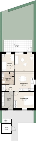 Nestled within the tranquil, green surroundings of the Bakkegårdsvej area in Gårslev, this spacious residence offers generous living space highlighted by a charming level difference in the living area alongside two well-sized bedrooms. This home thoughtfully combines architectural design, natural light, and practical features, making it an ideal choice for couples, small families, or anyone seeking additional roominess.At the heart of the property is the expansive kitchen and dining area, where a subtle elevation change naturally separates the seating and eating zones, lending the space a distinctive character with added depth and variety. The bright HTH kitchen runs neatly along one wall and is fully equipped with modern appliances. Large windows and a patio door enhance the indoor-outdoor connection by framing views of the sizeable terrace and allowing ample daylight to flood in.