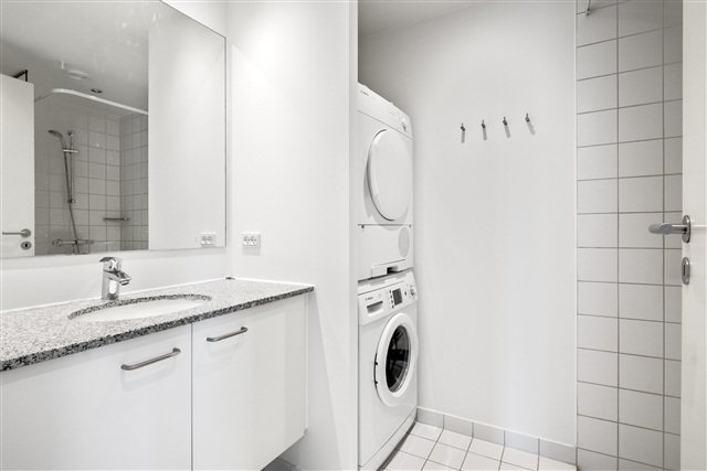 Located just steps from the crashing waves of Amager Strand and offering stunning views over the Øresund, this well-arranged three-room apartment features a lovely balcony and access to a shared rooftop terrace. The residence boasts a practical layout and is ready for immediate occupancy. Additionally, there is an option to rent a parking space in the basement.Inside, the apartment welcomes you with a spacious entrance hall providing ample room for outerwear. The large open kitchen and living area flow seamlessly together and open onto a balcony facing the Øresund. The bathroom is equipped with a shower and laundry facilities. Two generously sized bedrooms are furnished with wardrobes, and there is a storage room within the apartment for extra convenience.