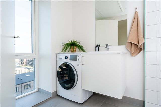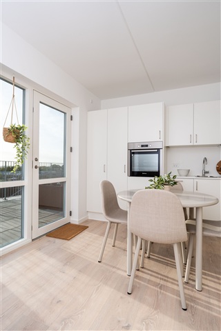 This contemporary 2-room apartment, situated in the building "Udsigten" in Blomsterhaven, Tilst, offers a rare blend of modern features, prime location, and striking views. The residence boasts an exclusive design, complete with advanced white goods and underfloor heating, ensuring both comfort and sophistication throughout.A distinctive feature of this home is the private entrance accessible directly from the rooftop terrace, providing effortless access to an outdoor area framed by lush greenery and basked in sunlight from dawn till dusk. Ideal for relaxation, entertaining guests, or soaking up the sun, this rooftop oasis enhances the living experience. Additionally, a practical storage room is included, offering ample space for organizing belongings conveniently.