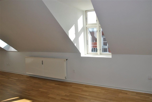 This attractive two-room penthouse apartment is available for rent in the heart of Viborg. The layout includes an entrance hall, a spacious and bright living room, and a bedroom equipped with built-in wardrobes. The kitchen comes fully furnished with a refrigerator/freezer, stove, extractor hood, and dishwasher.The bathroom is newly renovated and features a shower along with a washing machine. Throughout the apartment, the floors have been sanded down to a smooth finish. Additional amenities include an intercom system and a private storage room for the tenant's convenience.