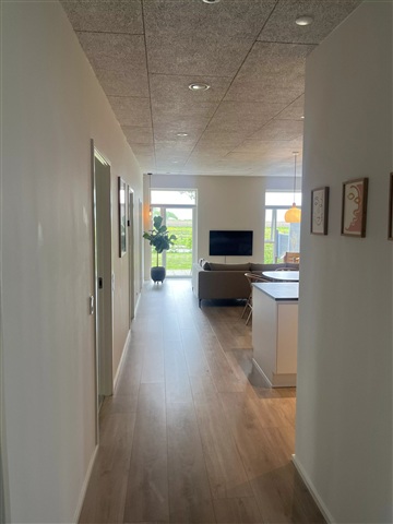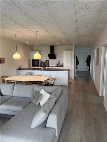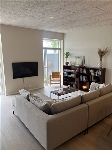 A spacious and contemporary end-terrace house is available for rent in a quiet and sought-after neighborhood in northwest Randers. Constructed in a modern design, the residence offers a bright and well-organized layout, ready for immediate occupancy and providing ample room to accommodate both family life and everyday living.The property encompasses 120 square meters, featuring an entrance area combined with a utility room, a large open-plan kitchen and dining space seamlessly connected to the living room, four generously sized bedrooms, and a sizable bathroom. The open floor plan allows for abundant natural light and creates a welcoming environment ideal for gatherings.