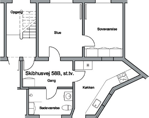 The apartment is situated on Skibhusvej, right in the center of the Skibhuskvarteret neighborhood, offering proximity to both lush green spaces and the city's vibrant atmosphere. Shopping facilities are conveniently located just around the corner, while the pedestrian street, train station, and harbor are all within a short distance. Public transportation options are readily accessible, providing easy travel around the city and beyond.Boasting a bright and inviting interior, the dwelling presents a cozy environment that lends itself well to personalized furnishing. Included in the apartment is a dishwasher, adding convenience to everyday living.