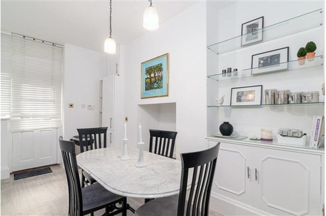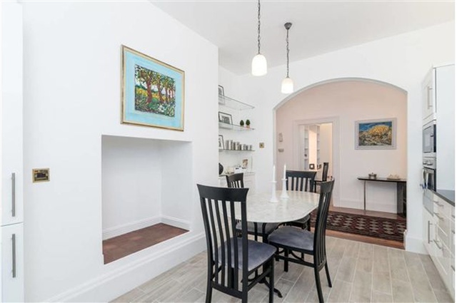 The kitchen is well-equipped with modern appliances, including a stove, microwave, oven, and coffee machine. Paired with a dining table, it’s the perfect space for preparing and enjoying home-cooked meals.