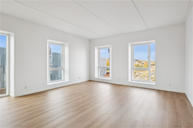Shared amenities include green outdoor spaces suitable for relaxation and play, bicycle parking, as well as easy access to walking trails and recreational zones. Its location provides proximity to the fjord and the various opportunities the city offers.
