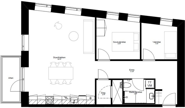 3 room apartment on 92 m2