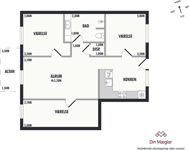This inviting four-room apartment encompasses 89 square meters and is situated on the first floor, offering an excellent choice for those seeking a contemporary home that combines tranquility, ample natural light, and a vibrant community spirit. The residence features a west-facing balcony that benefits from abundant afternoon sunlight and is located within Teglgaarden-a dynamic and recently developed neighborhood in the heart of Nørresundby.The layout is carefully planned, showcasing a sleek Invita kitchen along with a bathroom fitted with high-quality materials. Household conveniences include a Bosch washing machine and dryer, and the property is equipped with everything needed for modern living, such as a private storage room and elevator access.