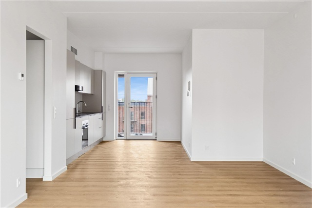 This spacious 4-room apartment spans a total area of 121 square meters and is ideal for families or anyone seeking generous living space combined with contemporary conveniences. The south-facing balcony allows for sunlight throughout most of the day, offering a pleasant outdoor retreat perfect for both daily living and relaxation.Situated in Stigsborg, the residence enjoys proximity to the fjord, surrounding greenery, and is only a short distance from Aalborg's city center. Inside, you will find a large living area that seamlessly integrates with an open Invita kitchen equipped with built-in appliances. The apartment comprises three well-sized bedrooms and a sizable bathroom featuring a washer and dryer. Underfloor heating is installed throughout, complemented by wooden floors from Moland that enhance the modern and sleek interior design. Access to the balcony is available directly from the living room, providing additional natural light and ventilation.