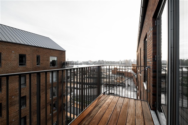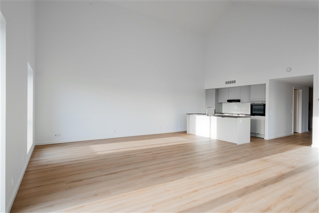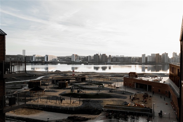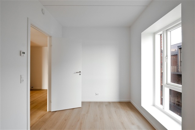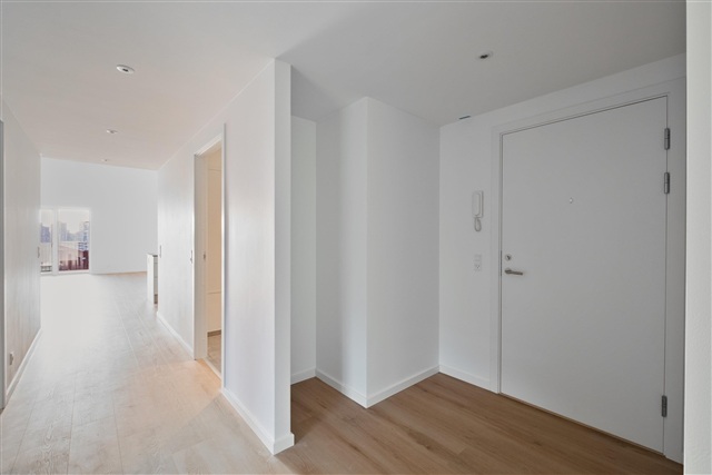 Covering 136 square meters, the apartment comprises four generous rooms. The sizeable balcony oriented towards the south-east offers abundant sunlight from morning until evening. The open-plan Invita kitchen is integrated directly with the living space. The bathroom is large and fitted with laundry facilities. Every room benefits from underfloor heating and premium Moland flooring. The building features an elevator and inviting communal areas. Positioned conveniently close to the fjord, green spaces, and Aalborg city center.