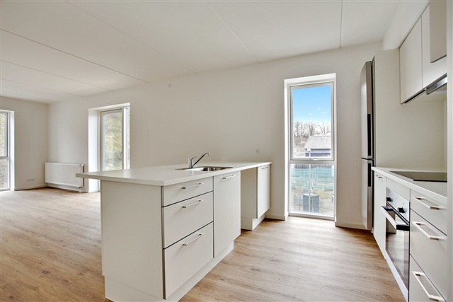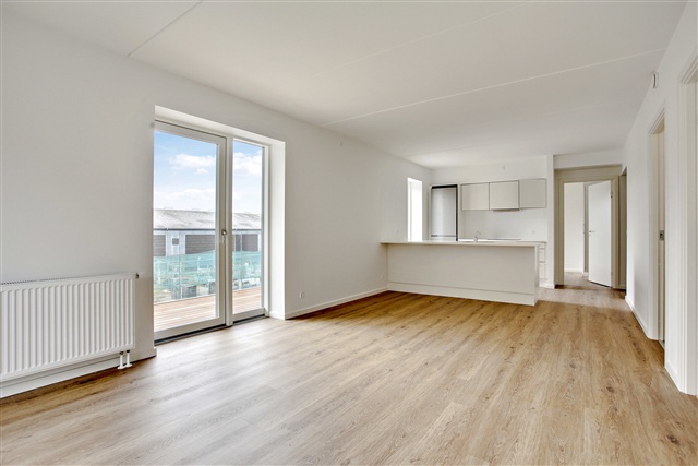 This inviting and contemporary three-room apartment, measuring 82 square meters, is situated in the highly sought-after Eternitten neighborhood of Aalborg, offering a central location. The residence is characterized by large windows that flood the space with natural daylight throughout, combined with a thoughtfully designed layout that balances both practicality and comfort.The generous bathroom is equipped with a washing machine and a tumble dryer, alongside underfloor heating that adds an extra level of daily comfort. From the living room, you have direct access to a spacious, sun-filled balcony, providing an ideal outdoor space to enjoy all year round.