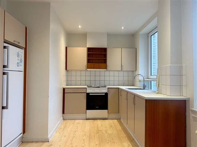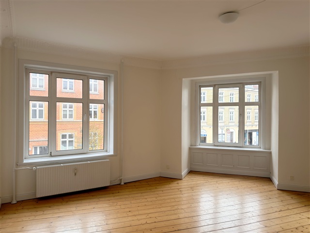 This apartment features four spacious rooms that offer versatile options for furnishing, making it suitable for couples, small families, or shared living arrangements. Ample natural light fills the space through large windows, while the well-thought-out floor plan ensures the home is both practical and inviting.The kitchen comes equipped with a dishwasher, enhancing convenience and ease in everyday life. Situated on Boulevarden, the location is highly central-positioned conveniently between the train station, pedestrian shopping street, cafes, restaurants, various shops, and an array of cultural venues. Everything is reachable within a few minutes on foot, allowing for a lifestyle that balances simplicity and vibrancy.