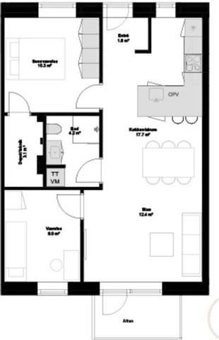 This well-designed three-room apartment spans 76 square meters and is situated on the ground floor at Nerudas Allé 119, within the sought-after residential neighborhood of Tranders Høje. The layout is highly practical, featuring bright living areas that make efficient use of the available space. Constructed with an emphasis on quality and comfort, this residence is suitable for couples, small families, or individuals seeking generous living quarters.Please note that dogs weighing up to 15 kilograms are permitted, whereas cats are not allowed.