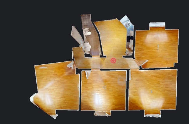 This move-in ready apartment spans 105 square meters and features a practical layout highlighted by bright materials throughout. Upon entering, a hallway and distribution corridor connect to four versatile rooms suitable for various furnishing options. Each room benefits from white-painted walls, large windows, and continuous hardwood floors that create a light and airy atmosphere. Among these rooms, one stands out with a distinctive bay window that floods the space with natural light and provides a cozy niche, ideal for a reading corner or a desk setup. The floor plan is well-suited for shared living arrangements, offering multiple separate bedrooms alongside a communal living area, or it can comfortably accommodate a family needing extra bedrooms, a home office, or guest quarters.The kitchen is modern and bright, featuring ample counter and cabinet space, a dark countertop, mosaic tile backsplash, and recessed ceiling lights. It is equipped with a dishwasher, oven, stovetop, and a combined refrigerator and freezer. Near the window, there is room for a small dining table. An angled wall adjacent to the kitchen adds architectural interest and enhances the welcoming ambiance.