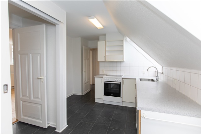 This move-in ready apartment offers three rooms spread over 81 m², blending bright finishes with classic design elements and a practical layout. The walls have been freshly painted in white, while the living areas and bedrooms feature beautiful, continuous plank flooring that creates a warm and welcoming environment. The angled ceilings combined with the distinctive dormer and muntin windows contribute additional charm and allow for a pleasant influx of natural light.The residence consists of three well-proportioned rooms, all of which are bright and easy to furnish according to personal taste. Traditional panel doors, the consistent wooden flooring, and the calm color palette provide a neutral backdrop that makes personalizing the space straightforward. The layout is versatile, making it well suited either for two bedrooms alongside a living room or for three separate rooms-ideal for shared living arrangements with a common kitchen and bathroom.