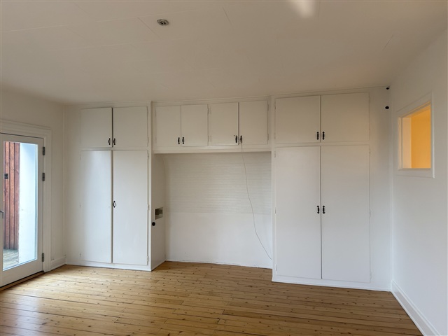 Throughout the home, consistent plank flooring combines with white-painted surfaces and original details that lend character to the space. Numerous built-in cupboards and shelves facilitate organized living, while the expansive windows guarantee an inviting abundance of daylight across every room.