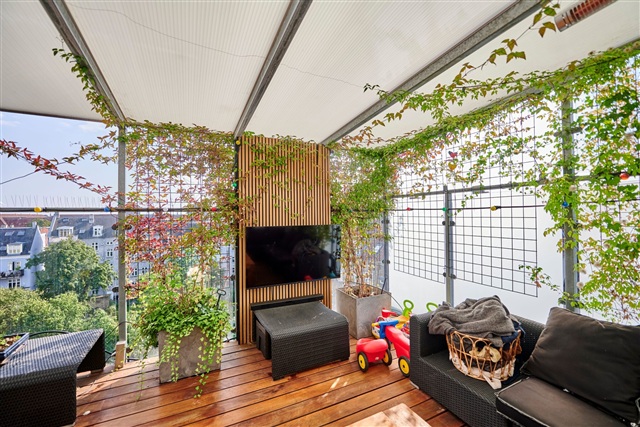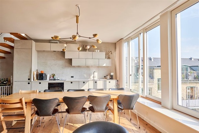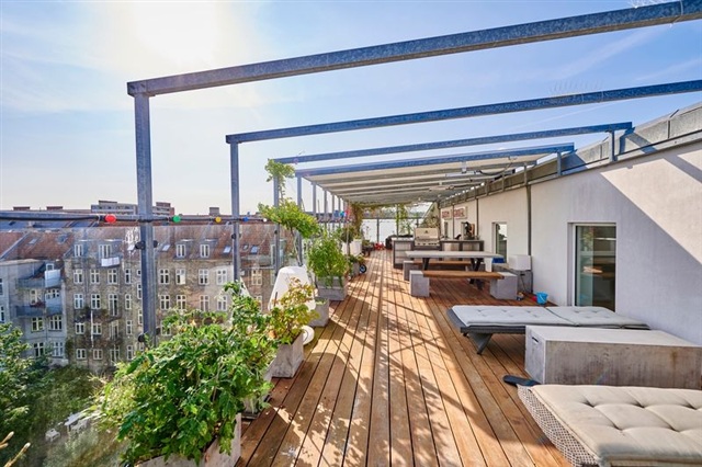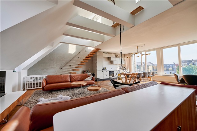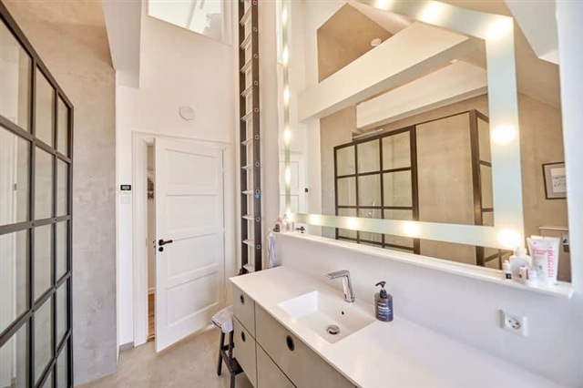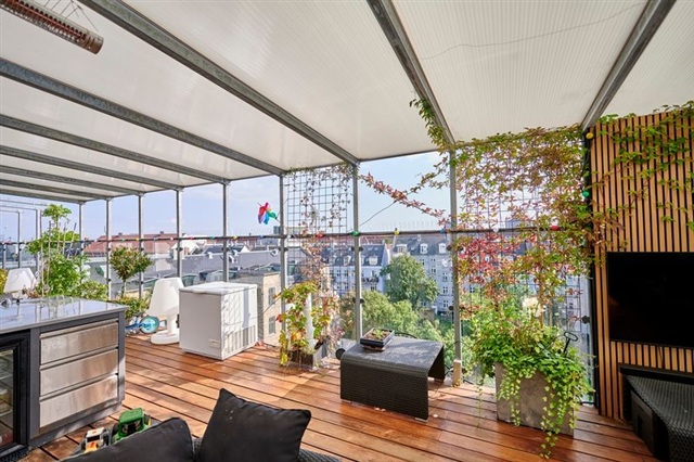 The grand ceiling heights coupled with expansive windows contribute to an impressive sense of spaciousness, lending the residence a sophisticated and airy atmosphere. A private rooftop terrace crowns the apartment, providing a tranquil retreat where you can bask in the sun, take in panoramic views, and enjoy peaceful solitude. This outdoor space is well suited for unwinding, pleasant summer evenings, and exclusive social occasions beneath the open sky.