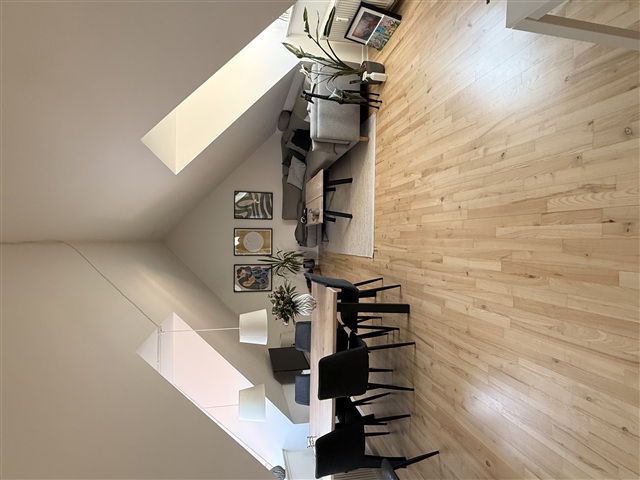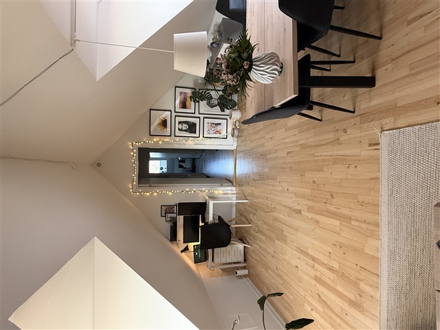 This attractive two-room apartment is situated on the top floor and features a generously sized, bright living room. The spacious living area comfortably accommodates a seating corner, dining table, and even a potential workspace.The residence includes a well-maintained, separate kitchen equipped with a refrigerator/freezer, stove, extractor fan, and dishwasher, with enough room for dining. The bedroom offers a cozy atmosphere and is highlighted by a beautiful window arrangement. The bathroom is practical and well-kept, featuring cabinet storage and a separate shower enclosure.