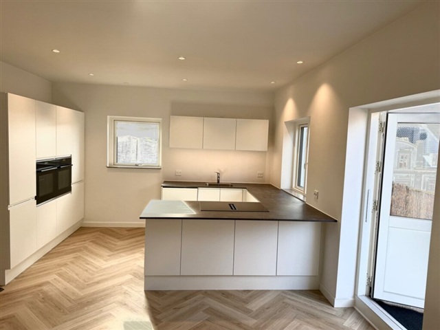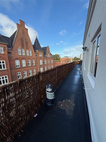 Recently renovated penthouse apartment situated in the heart of Fredericia featuring herringbone-patterned wooden floors. The layout includes a spacious living room along with four bedrooms and two bathrooms. Additionally, there is a generous rooftop terrace measuring 50 square meters. Please note that the floor plan is not drawn to scale. Rentals will not be offered to individuals listed in the RKI registry.